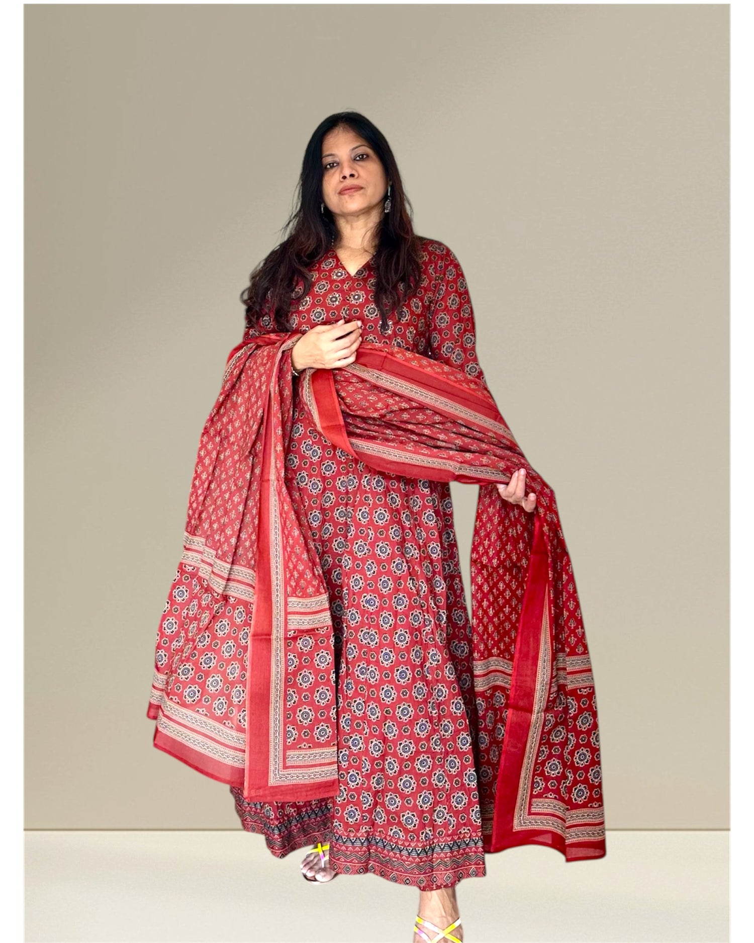 Red Cotton Anarkali